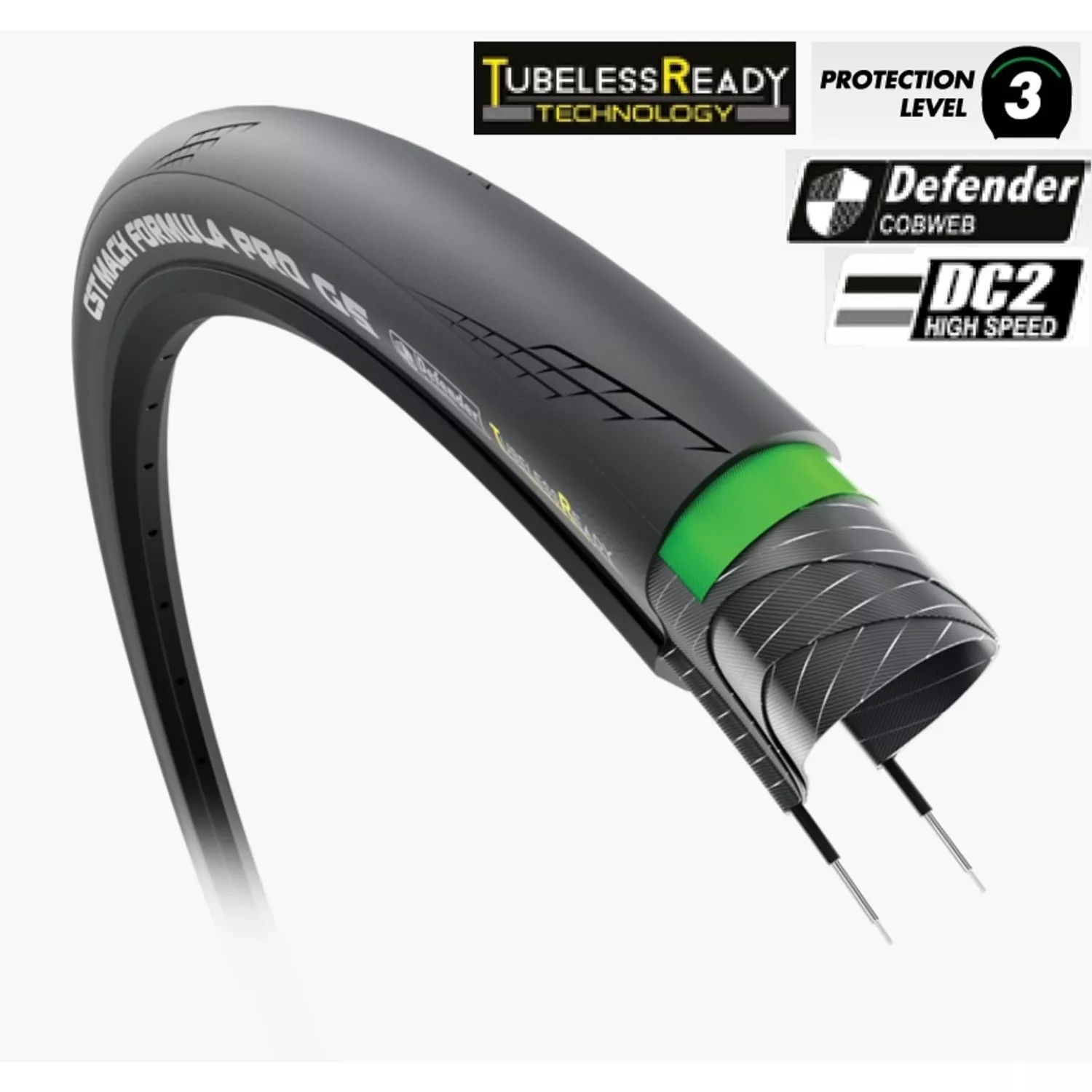 CST presenterar Mach Formula Pro G5, ett överlägset tillägg till vår range av högprestandadäck för landsväg. Ett TubelessReady-däck med ett ultralätt DefenderCobweb punkteringsskydd och en premium 120 TPI stomme som erbjuder stor flexibilitet och hållbarhet. Speciellt konstruerad för fart på asfalt och med hög smidighet. 28-622 700x28C, 120Tpi, Vikbart, Vikt: 310g, DualCompound, Punkteringsskydd: EPS, TubelessReady