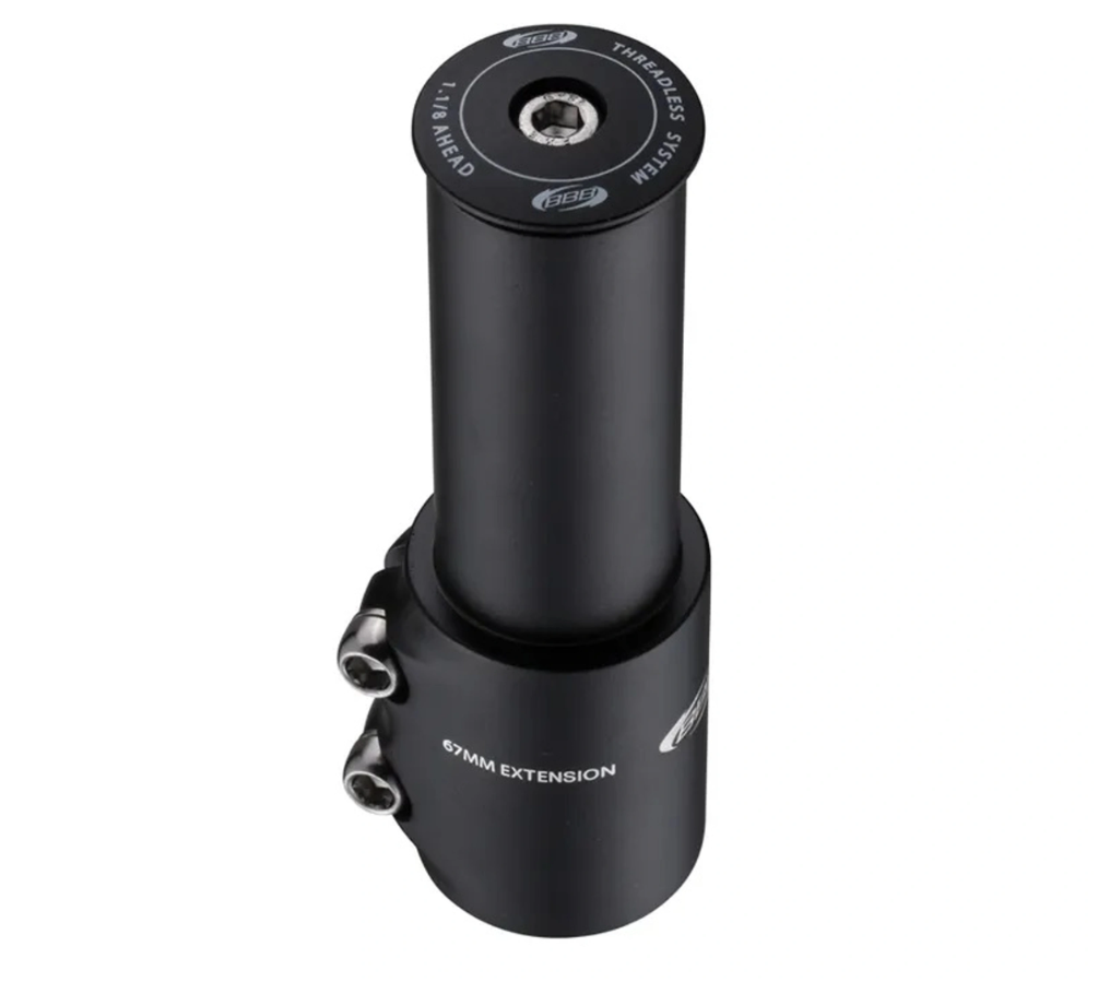 Förlängare för framgaffel som monteras på som en styrstam. Passar gafflar med rör som har ytterdiameter 1 1/8 28,6 mm. Förlänger 67 mm på höjden och den är tillverkad i aluminium 6061. Aheadcap medföljer.