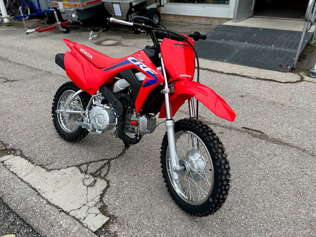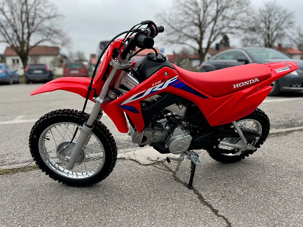CRF110F är med sin beprövade hållbarhet och nybörjarvänliga prestanda ett perfekt exempel på Hondas långa historia av fyrtakts knattecrossar, som går nästan 40 år tillbaka till den legendariska XR75. Nuförtiden har dock modellen modern teknik som Keihin bränsleinsprutning, 4-växlar med automatkoppling och elstart. Till 2023 uppdaterades CRF110F med färgsättning och dekaler från storasyskonen CRF250R och CRF450R.