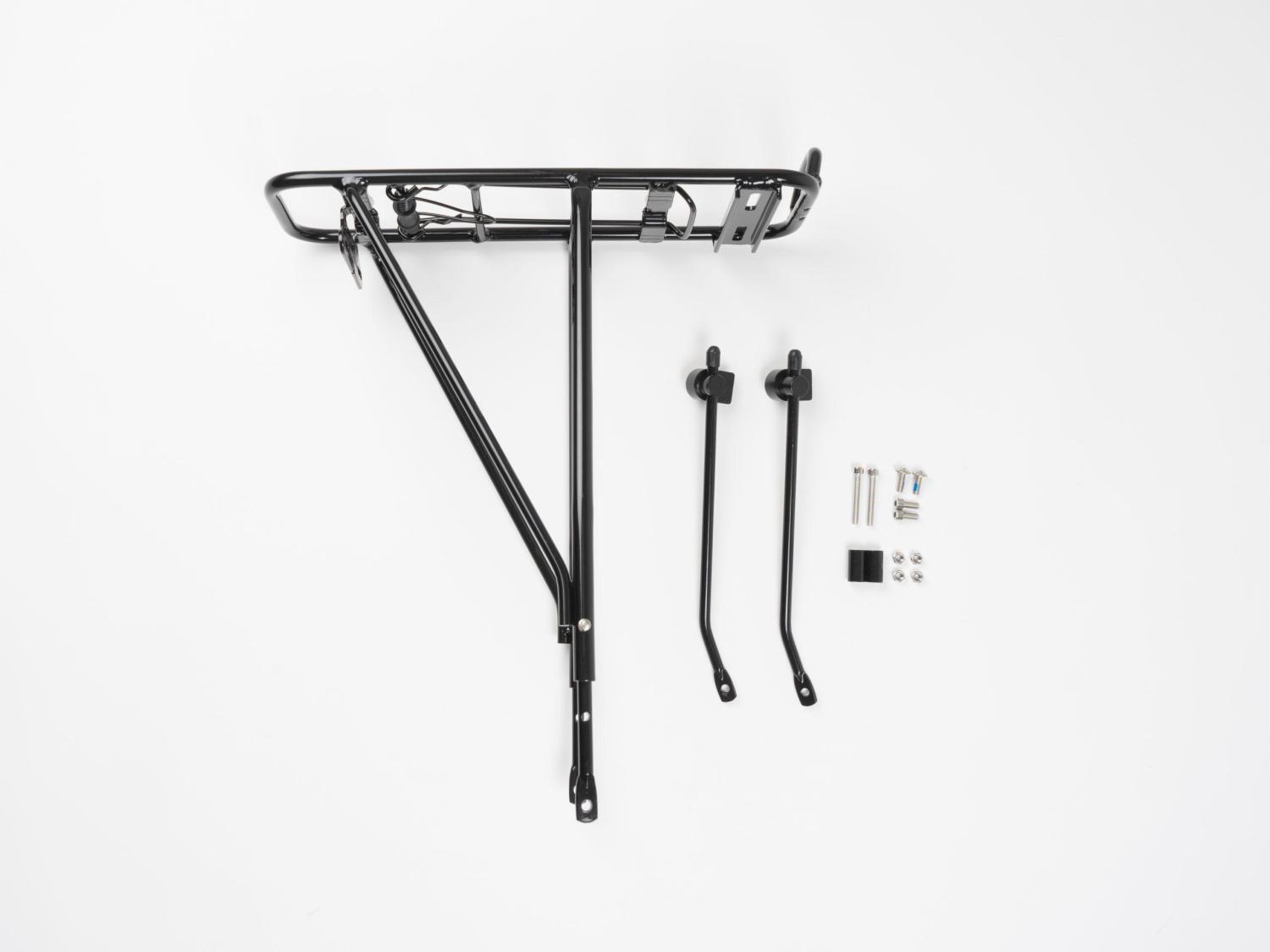 Stabil AVS-pakethållare för cyklar med skivbromsar. Inkluderar justerbara fästen för enkel installation
