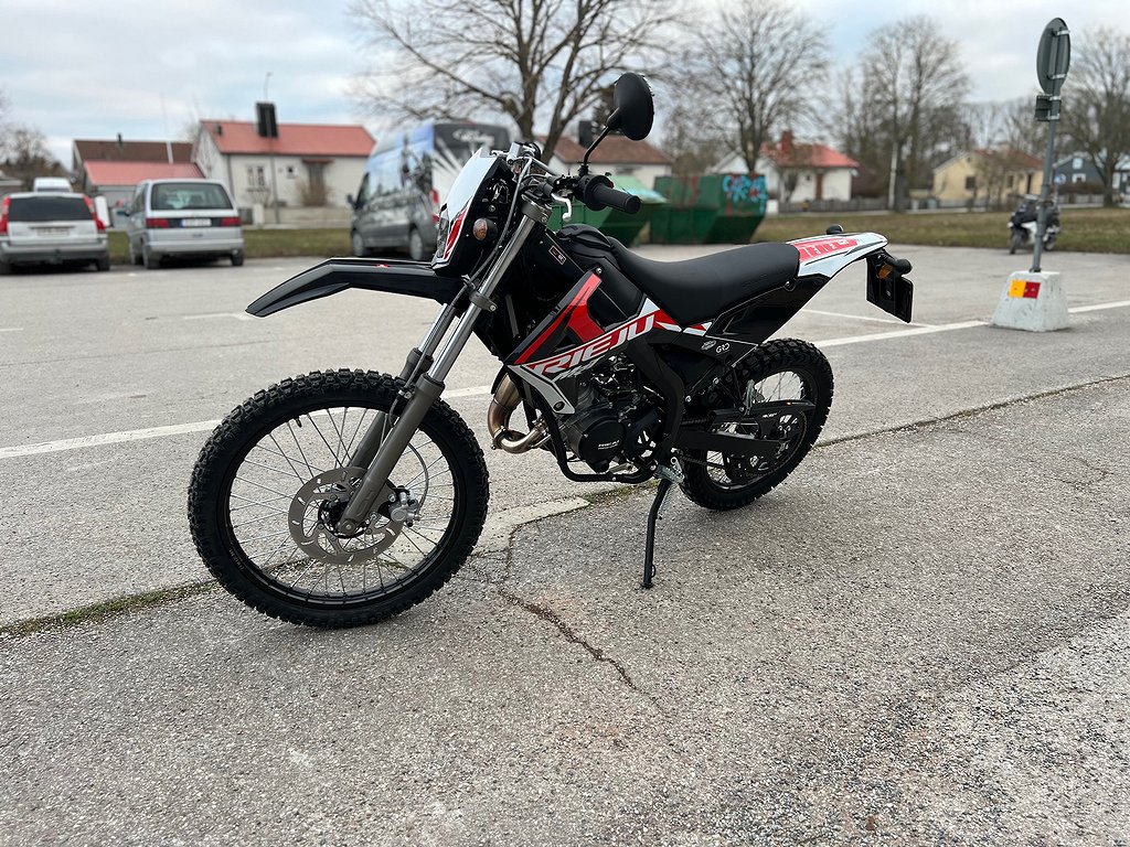 Den nya MRT-serien tar Rieju 50cc till en ny nivå. CAD-utvecklad och kompakt ”dualbeam”-chassi ger den ultimata viktfördelningen både på och utanför vägen. Längre hjulbas ger förbättrad vridstyvhet vid aktiv körning. Den moderna karossen och strålkastarnas design skapar en MC-look. Med den senaste Minarelli AM6 vätskekylda 2-taktsmotorn och den 6-växlade lådan får du kraften på rätt ställe. Digital multifunktionsdisplay för hastighet m.m. EU-45.
