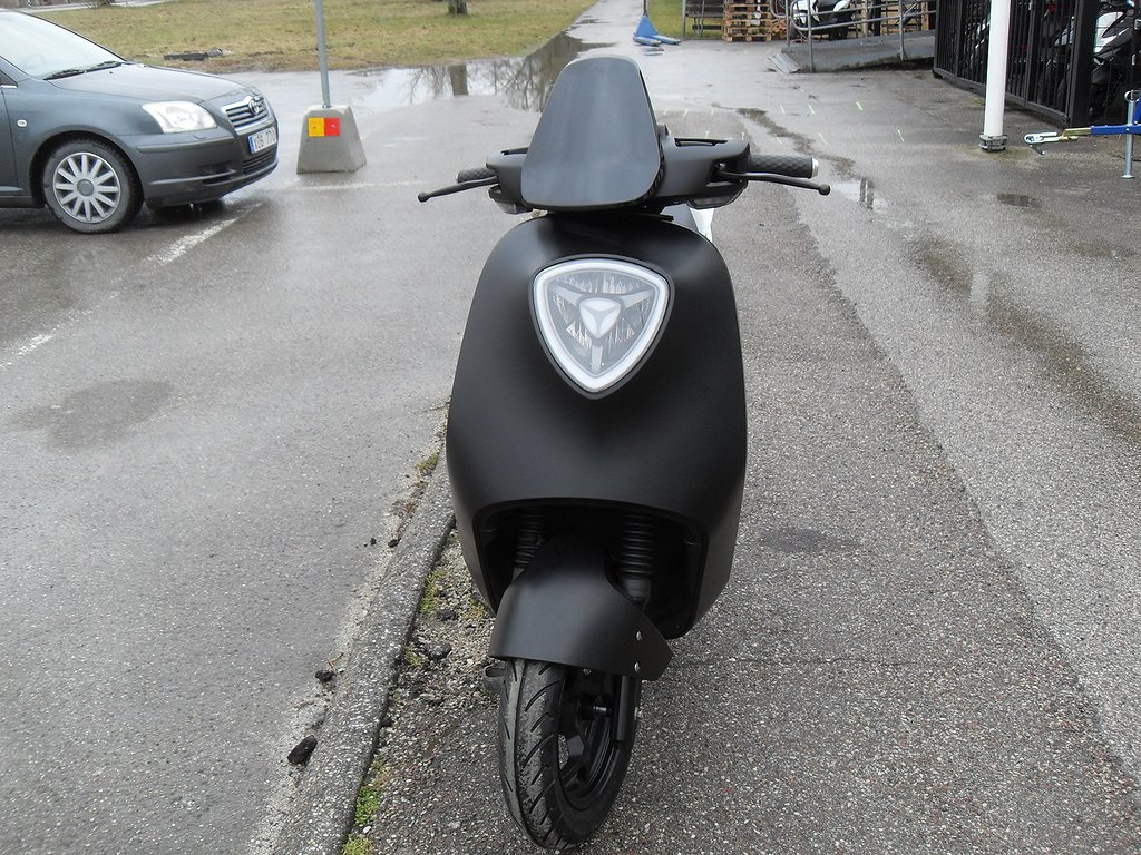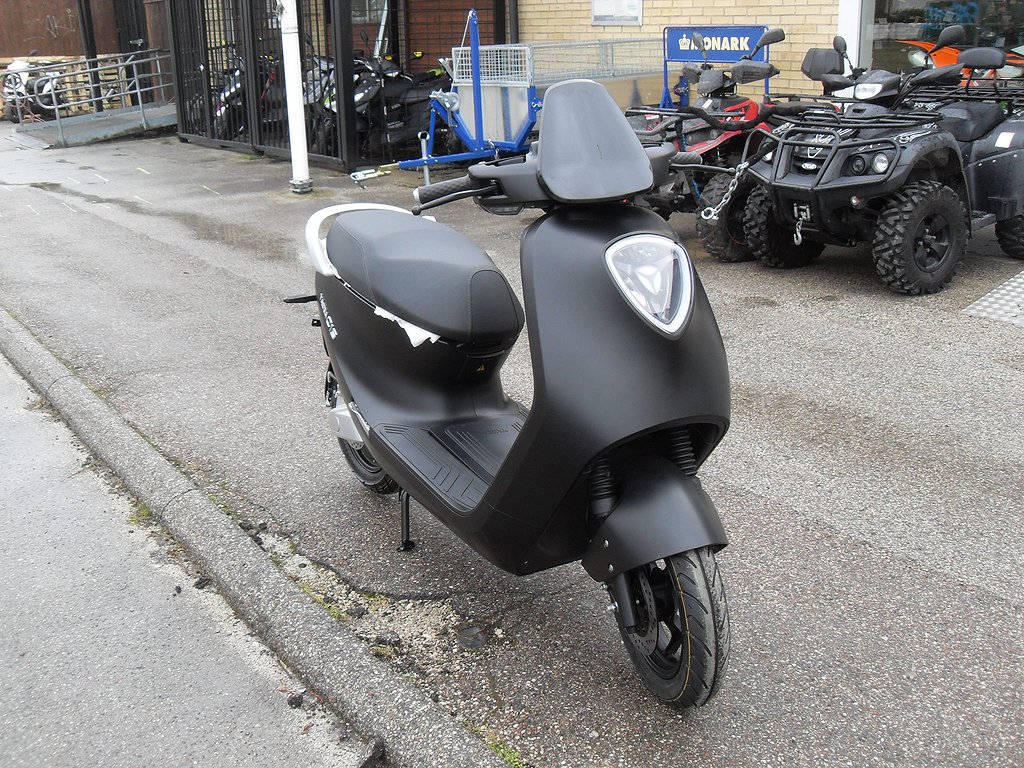 Stilren design med gott om plats för både förare och passagerare. Tyst och stark motor med 2st effektlägen. Keyless startfunktion (nyckel kan ligga kvar i fickan). Batteriet är placerat under fötterna vilket ger en låg tyngdpunkt, jämn viktfördelning och ett välbalanserat fordon. 12” hjul ökar komfort och säkerheten. USB-uttag för laddning av t.ex. smartphone. Elsystem och komponenter är designade för att klara vårt nordiska klimat med regn salt och kyla. Hjälmfack under sadeln. Panasonic battericeller med talk-back funktion som i kombination med smart laddaren optimerar batteriets livslängd. 45km/h Euro 5